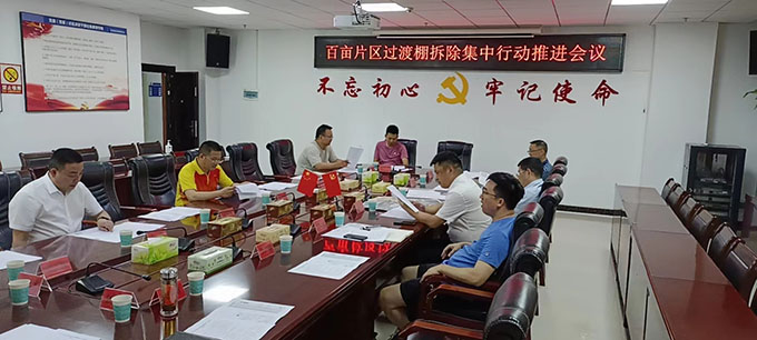 百畝片區(qū)過渡棚拆除集中行動推進會議現(xiàn)場